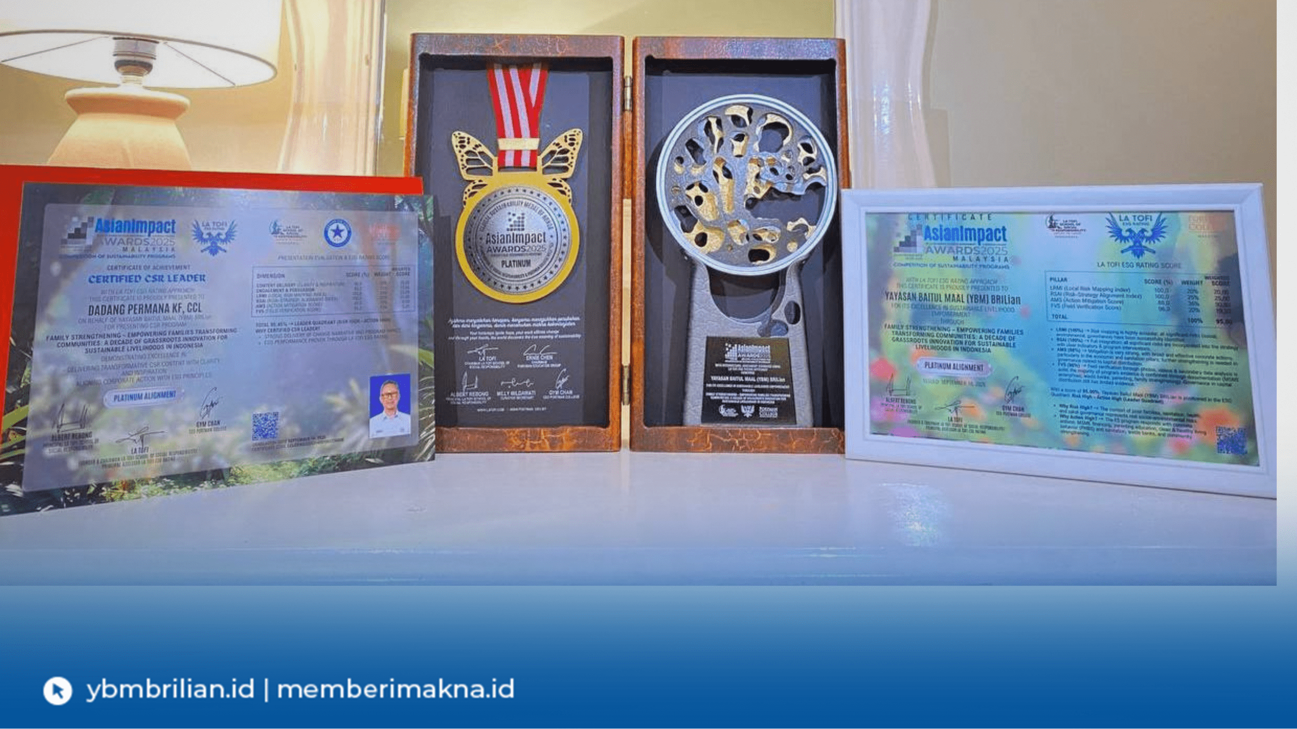 Dalam kesempatan yang sama, Dadang Permana KF, selaku Ketua Badan Pengurus YBM BRILiaN, juga menerima gelar Certified CSR Leader (CCL) sebagai pengakuan atas dedikasi dan kepemimpinannya dalam mengelola program CSR berkualitas. Penghargaan tersebut diserahkan langsung oleh Mr. La Tofi, Founder and Chairman of La Tofi School of Social Responsibility, penyelenggara acara bersama PORTMAN College.