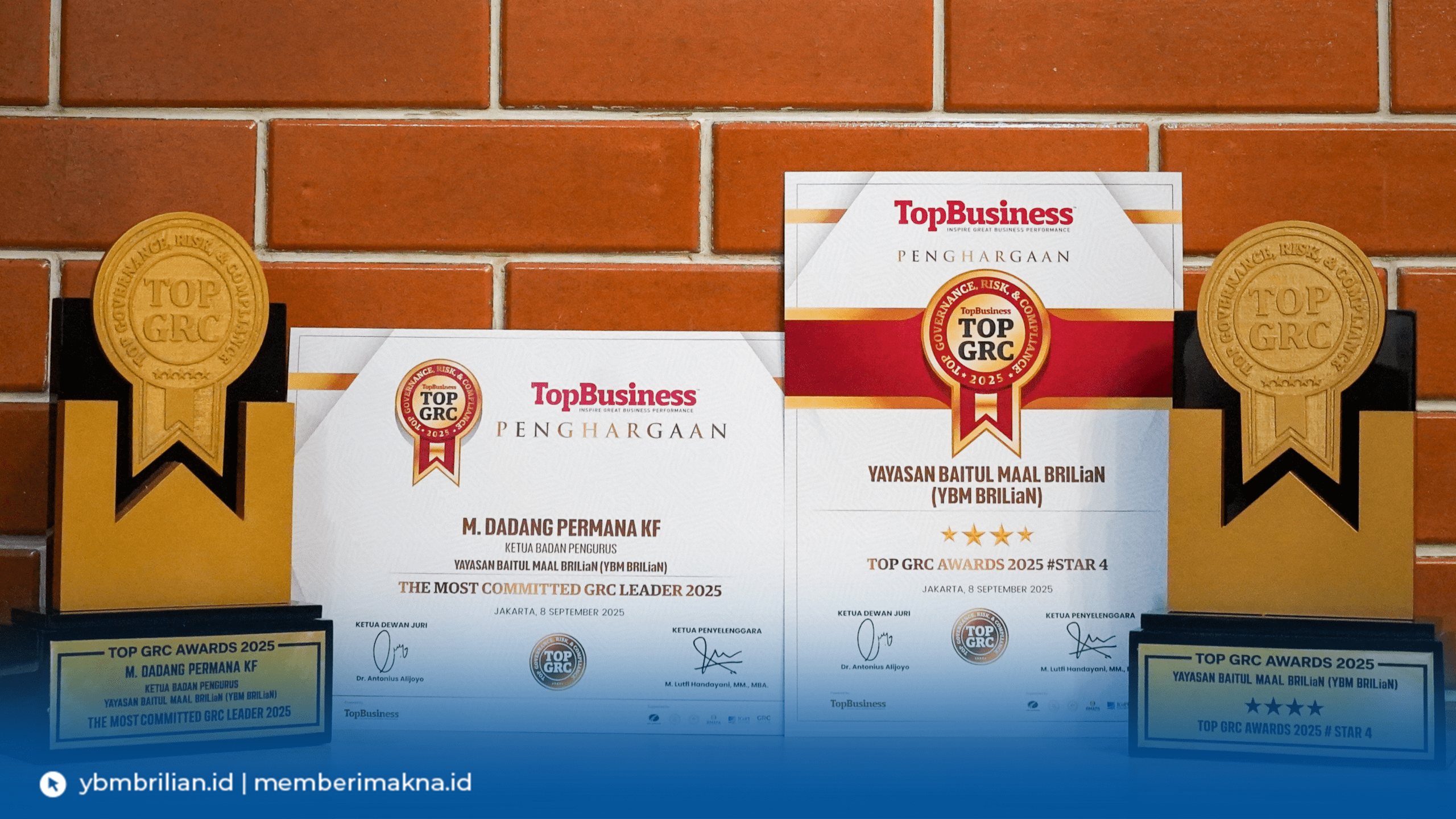 Jakarta – Yayasan Baitul Maal BRILiaN berhasil meraih penghargaan TOP GRC Awards 2025 dengan predikat #4 STAR. Mewakili YBM BRILiaN, penghargaan diterima langsung oleh Dani Wildan selaku Wakil Ketua Pengurus YBM BRILiaN, pada Senin (8/9), di Dian Ballroom, Hotel Raffles Jakarta. Secara khusus, Ketua Pengurus YBM BRILiaN, M. Dadang Permana KF, juga menerima penghargaan The Most Committed GRC Leader 2025 atas komitmen kepemimpinannya dalam mendukung implementasi GRC. Penghargaan ini diberikan berdasarkan evaluasi objektif dan independen dari Tim Penilai dan Dewan Juri atas sistem, infrastruktur, dan implementasi Tata Kelola, Risiko, dan Kepatuhan di YBM BRILiaN berada di kategori Sangat Baik sehingga dapat mendukung keberhasilan implementasi GRC, termasuk melalui pendekatan aspek ESG, dan SDGs, untuk peningkatan kinerja yang berkelanjutan.